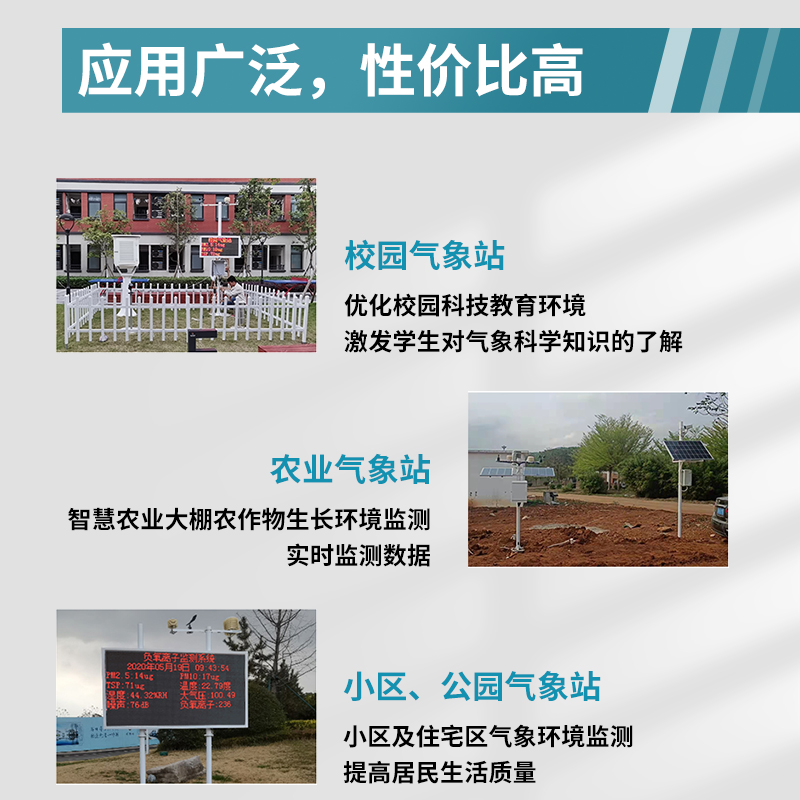 在校園里,小型氣象站可以為校園氣象環(huán)境實時監(jiān)測,直觀提供氣象數(shù)值,為師生提供教育教學(xué)數(shù)據(jù),為科研提供依據(jù)。