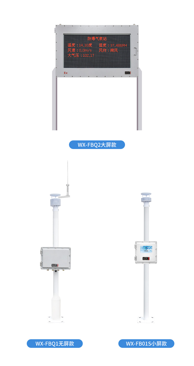 防爆氣象站防爆屏版又稱防爆氣象站,防爆氣象儀,防爆氣象站是萬象環(huán)境根據(jù)市場需求,針對化工廠、油庫等特殊場所而研發(fā)生產(chǎn)的一款一體化氣象站,它集數(shù)據(jù)采集、存儲、通訊、顯示于一體,通過有線通訊方式直接在防爆屏幕實時顯示數(shù)據(jù)。